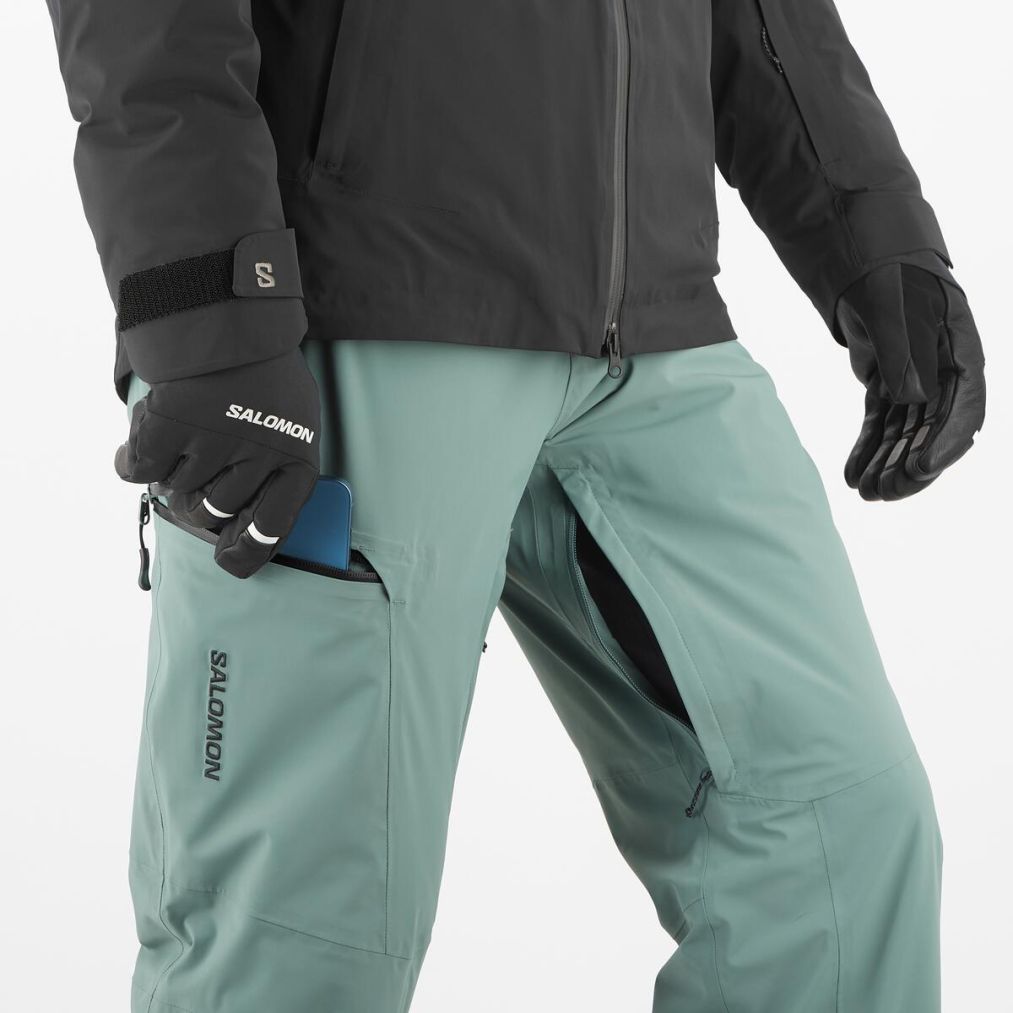 Material ranforsat pe partea inferioara interioara a pantalonului, protejeaza impotriva taieturilor cauzate de canturile schiului.
